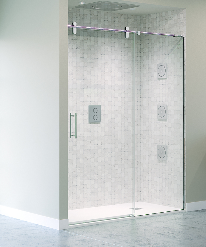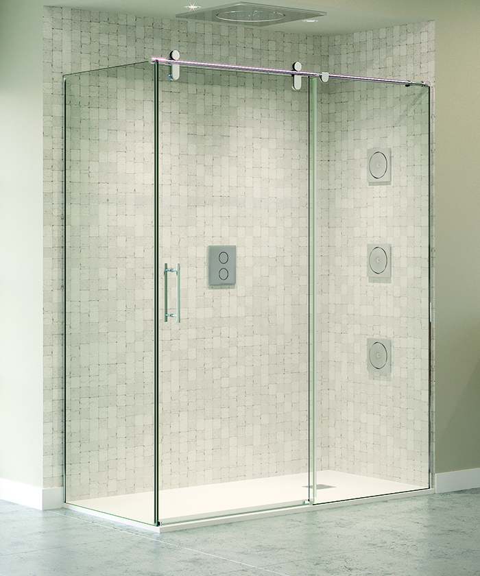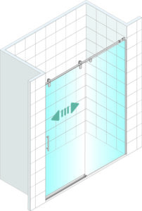 • Mampara frontal para ducha de una puerta corredera y un fijo