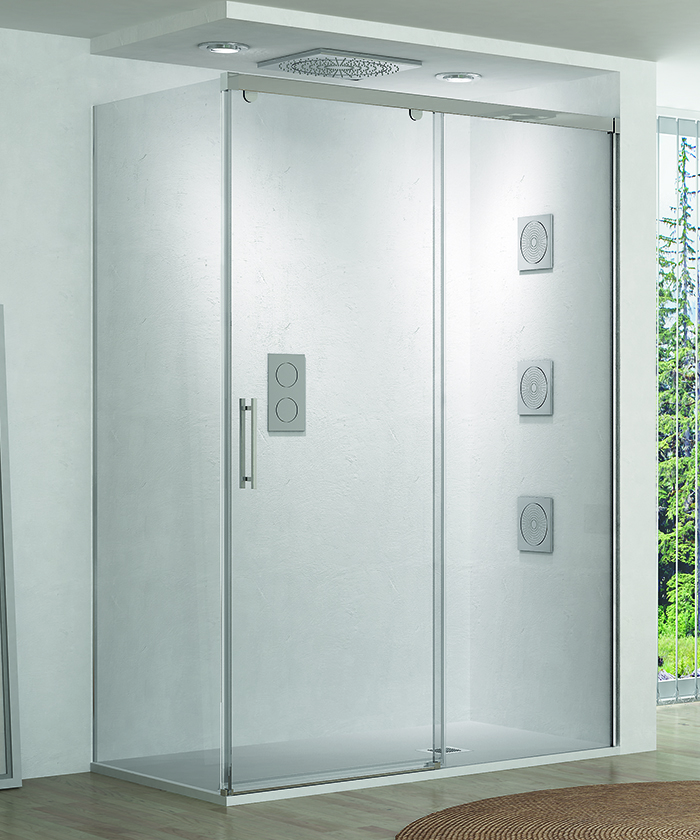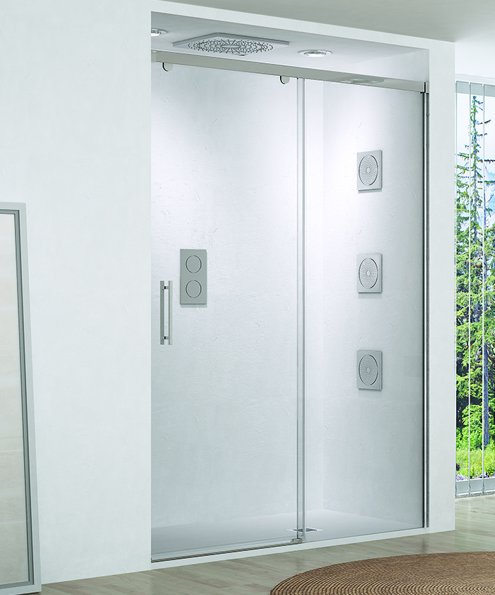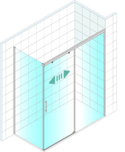• Mampara frontal para ducha de una puerta corredera y un fijo