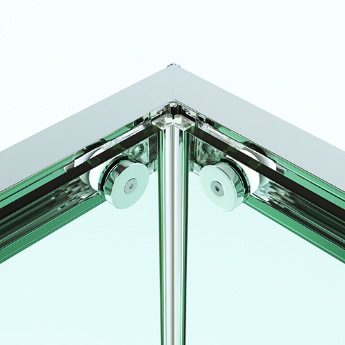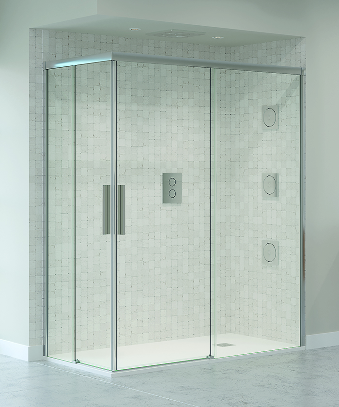 • Mampara angular para ducha de dos puertas correderas y dos fijos