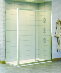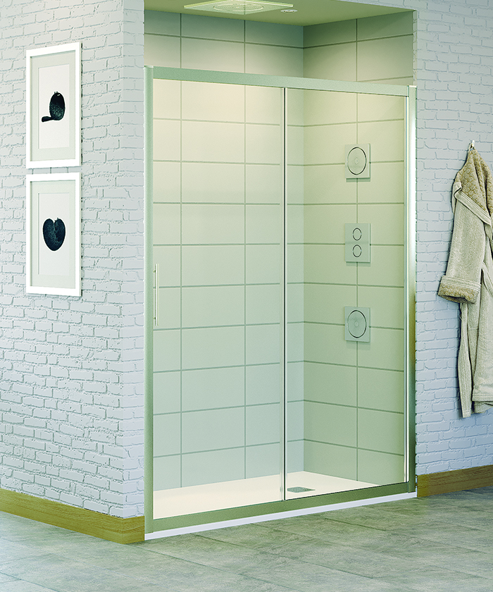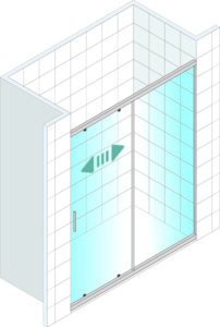 • Mampara frontal para ducha de una puerta corredera y un fijo