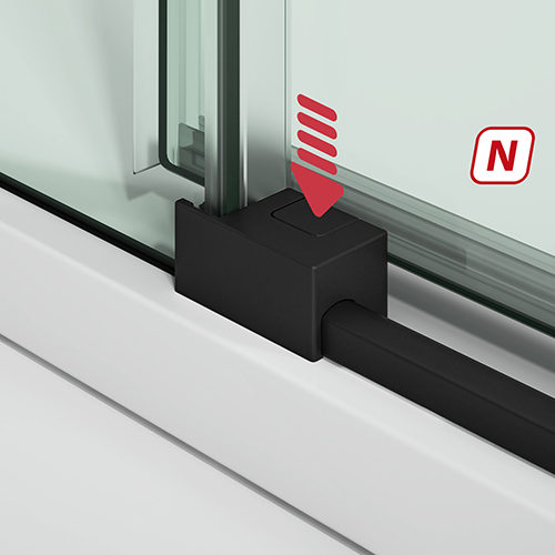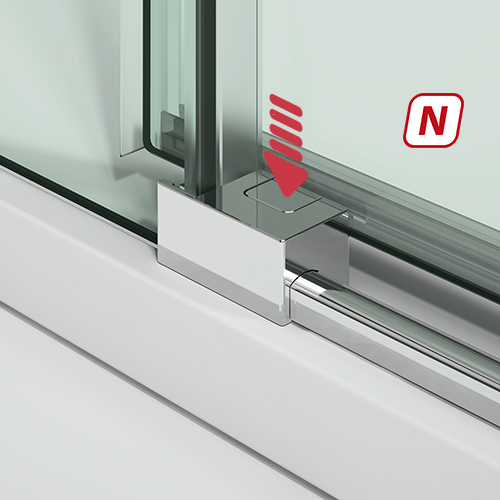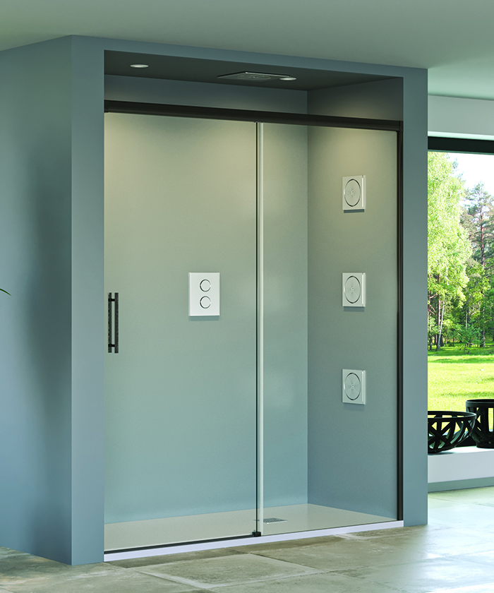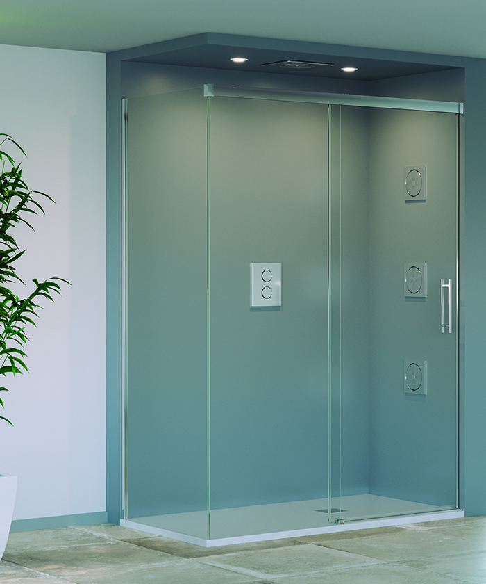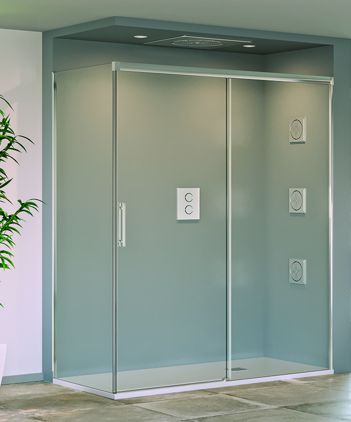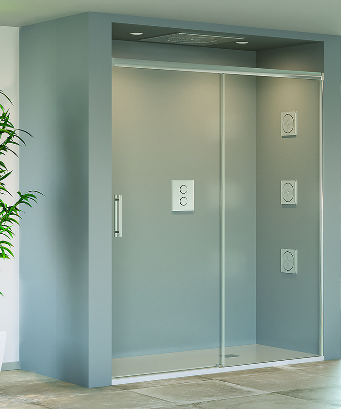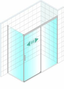 • Mampara frontal de ducha de una puerta corredera y un fijo