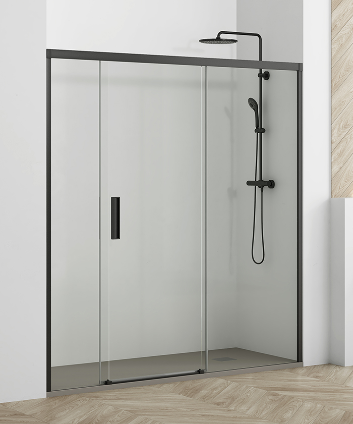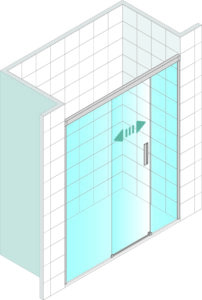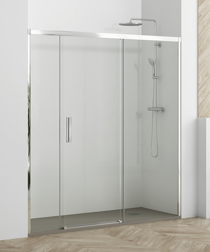 • Mampara frontal de ducha de una puerta corredera y dos fijos