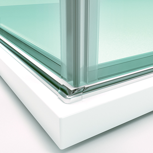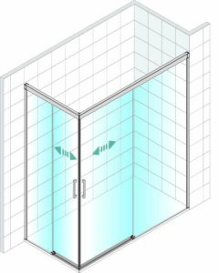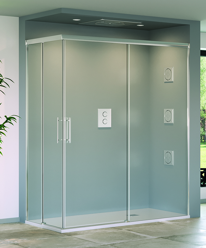 • Mampara angular para ducha de dos puertas correderas y dos fijos